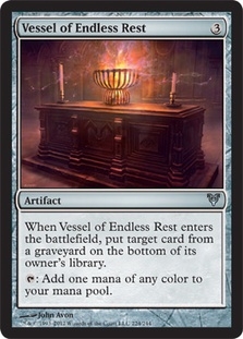 When Vessel of Endless Rest enters the battlefield, put target card from a graveyard on the bottom of its owner's library. Tap: Add one mana of any color to your mana pool.