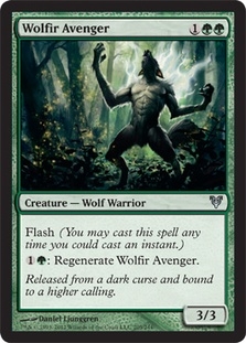Flash (You may cast this spell any time you could cast an instant.) 1G: Regenerate Wolfir Avenger.