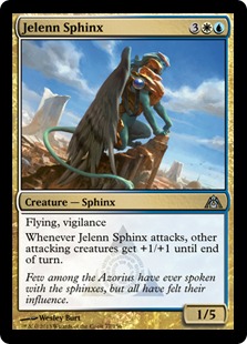 Whenever Jelenn Sphinx attacks, other attacking creatures get +1/+1 until end of turn.