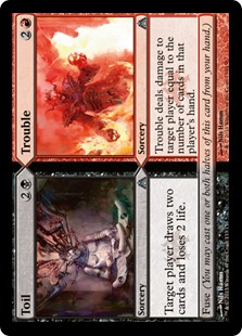 Trouble deals damage to target player equal to the number of cards in that player's hand.