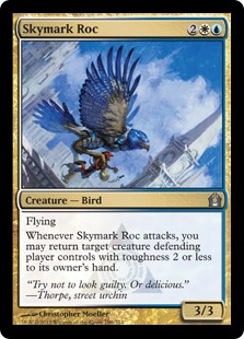 Whenever Skymark Roc attacks, you may return target creature defending player controls with toughness 2 or less to its owner's hand.