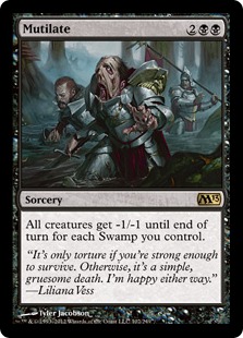 All creatures get -1/-1 until end of turn for each Swamp you control.
