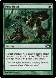 Target creature you control fights target creature you don't control. (Each deals damage equal to its power to the other.)