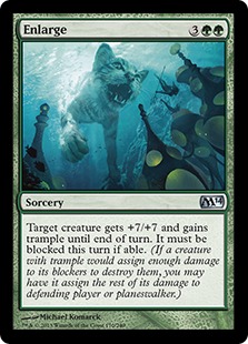 Target creature gets +7/+7 and gains trample until end of turn. It must be blocked this turn if able. (If a creature with trample would assign enough damage to its blockers to destroy them, you may have it assign the rest of its damage to defending player or planeswalker.)