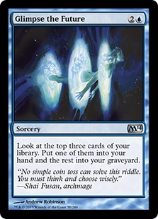 Look at the top three cards of your library. Put one of them into your hand and the rest into your graveyard.