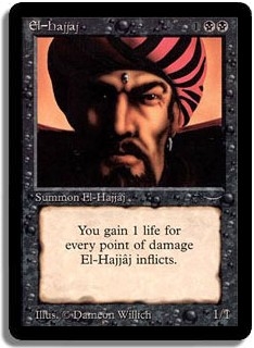 Gain 1 life for every 1 damage El-Hajjaj deals. You cannot gain more life in this way than the toughness of the creature or the total life of the player that El-Hajjaj damages.