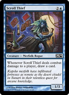 Whenever Scroll Thief deals combat damage to a player, draw a card.