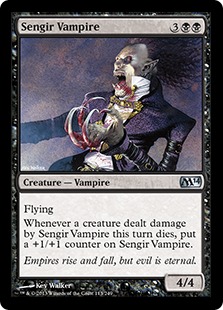 Whenever a creature dealt damage by Sengir Vampire this turn dies, put a +1/+1 counter on Sengir Vampire.