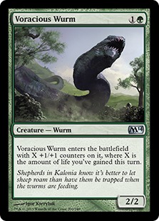 Voracious Wurm enters the battlefield with X +1/+1 counters on it, where X is the amount of life you've gained this turn.