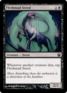 Whenever another creature dies, tap Fleshmad Steed.