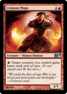 {R}: Target creature you control gains haste until end of turn. (It can attack and {T} this turn.)