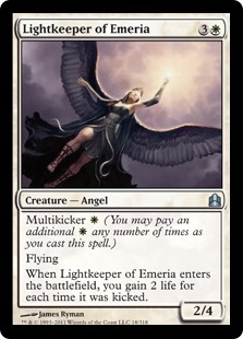 When Lightkeeper of Emeria enters the battlefield, you gain 2 life for each time it was kicked.