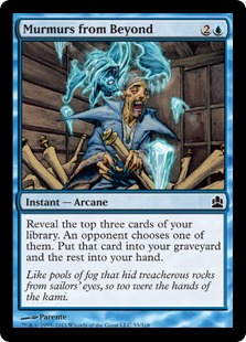 Reveal the top three cards of your library. An opponent chooses one of them. Put that card into your graveyard and the rest into your hand.