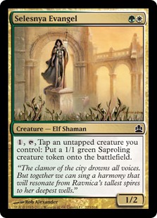 {1}, {T}, Tap an untapped creature you control: Put a 1/1 green Saproling creature token onto the battlefield.