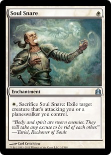 {W}, Sacrifice Soul Snare: Exile target creature that's attacking you or a planeswalker you control.