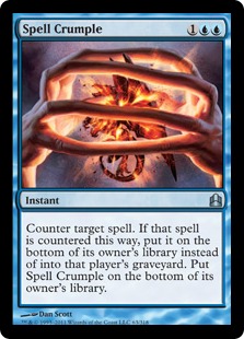 Counter target spell. If that spell is countered this way, put it on the bottom of its owner's library instead of into that player's graveyard. Put Spell Crumple on the bottom of its owner's library.