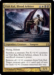 Sacrifice a creature: Put X +1/+1 counters on Vish Kal, Blood Arbiter, where X is the sacrificed creature's power.