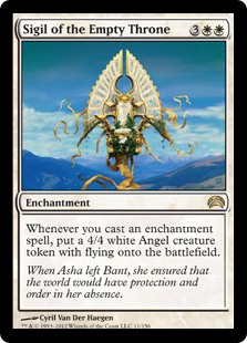 Whenever you cast an enchantment spell, put a 4/4 white Angel creature token with flying onto the battlefield.