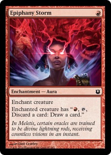 Enchanted creature has "{R}, {T}, Discard a card: Draw a card."