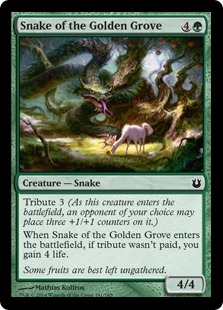When Snake of the Golden Grove enters the battlefield, if tribute wasn't paid, you gain 4 life.