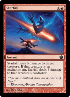 Starfall deals 3 damage to target creature. If that creature is an enchantment, Starfall deals 3 damage to that creature's controller.