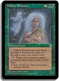 <T>: Take a faerie from your hand and put it into play as though it were just summoned. <2G>: Target green creature gains protection from black until end of turn.