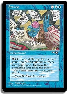 <2UU>: Look at the top five cards of your library and put one of them into your hand. Remove the remaining four from the game.