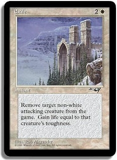 Remove target non-white attacking creature from the game. Gain life equal to that creature's toughness.