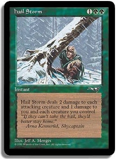 Hail Storm deals 2 damage to each attacking creature and 1 damage to you and each creature you control.