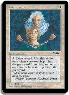 <3>: Draw a card. Use this ability only when a creature is put into the graveyard from play, and only once for each creature put into the graveyard.