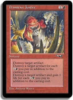 Destroy target artifact. Destroy a target artifact for each <1R> you pay in addition to the casting cost. Destroy a target artifact and gain 1 life for each <1G> you pay in addition to the casting cost.