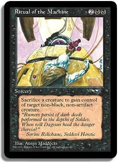 Sacrifice a creature to gain control of target non-black, non-artifact creature.