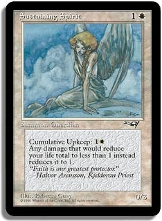 Cumulative Upkeep: <1W>. Any damage that would reduce your life total to less than 1 instead reduces it to 1.