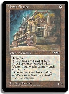 Trample. <3>: Banding until end of turn. <3>: All creatures banded with Urza's Engine gain trample until end of turn.