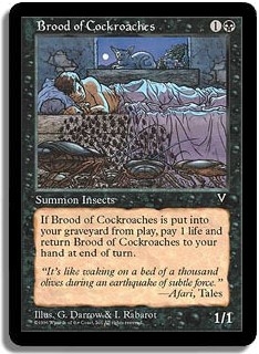 If Brood of Cockroaches is put into graveyard from play, pay 1 life and return Brood of Cockroaches to your hand at the end of turn.