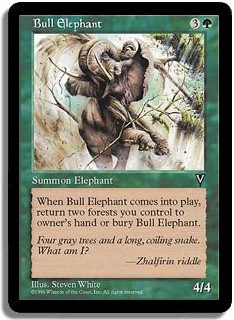 When Bull Elephant comes into play, return two forests you control to your hand or bury Bull Elephant.