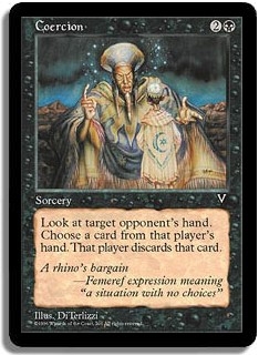 Look at target opponent's hand. Choose a card from that player's hand. That player discards that card.