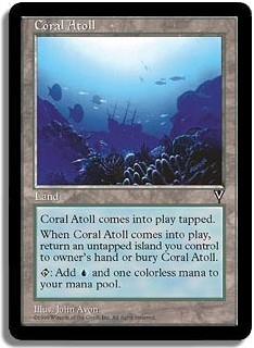 Coral Atoll comes into play tapped. When Coral Atoll comes into play, return an untapped island you control to owner's hand or bury Coral Atoll. <T>: Add <U> and one colorless mana to your mana pool.