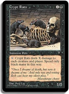 <X>: Crypt Rats deals X damage to each creature and player. Spend only black mana this way.