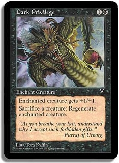 Enchanted Creature gets +1/+1. <Sacrifice a Creature>: Regenerate enchanted creature.