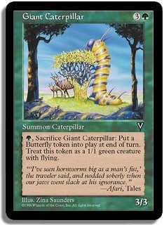 <G, Sacrifice Giant Caterpillar>: Put a Butterfly token into play at end of turn. Treat this token as a 1/1 green creature with flying.