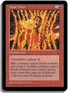 Cumulative upkeep: <R>. Blue creatures cannot block creatures you control. Nonblue creatures cannot block creatures you control unless their controller pays an additional 1 life for each blocking creature.