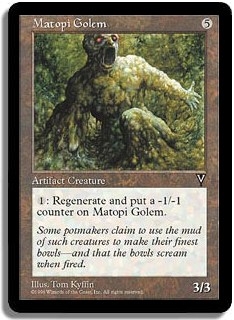 <1>: Regenerate and put a -1/-1 counter on Matopi Golem.