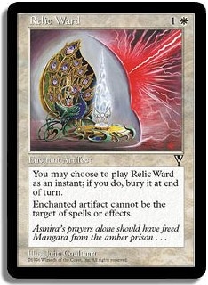 You may choose to play Relic Ward as an instant; if you do, bury it at the end of turn. Enchanted artifact cannot be the target of spells or effects.