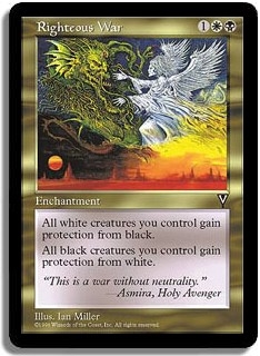 All white creatures you control gain protection from black. All black creatures gain protection from white.