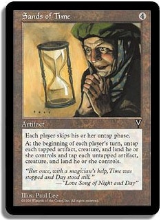 Each player skips his or her untap phase. At the beginning of each player's turn, untap each tapped artifact, creature, and land he or she controls and tap each untapped artifact, creature, and land he or she controls.
