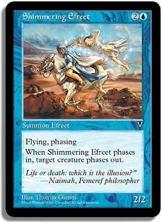 Flying, Phasing. When Shimmering Efreet phases in, target creature phases out.
