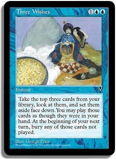 Take the top three cards from your library, look at them, and set them aside face down. You may play those cards as though they were in your hand. At the beginning of your next turn, bury any of those cards not played.
