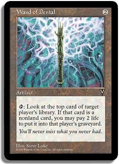 <T>: Look at the top card of target player's library. If that card is a nonland card, you may pay 2 life to put it into that player's graveyard.