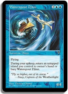 Flying. During your upkeep, return an untapped island you control to owner's hand or bury Waterspout Djinn.